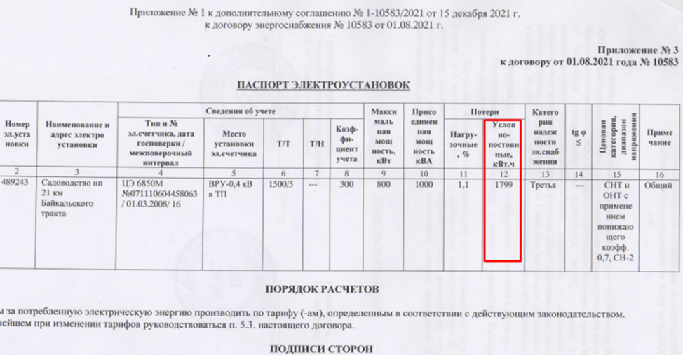Согласно Приложения 3 Договора 10583 условно постоянные потери составляют 1799 кВтч. Тариф электроэнергии для СНТ ЭРА с 01.07.2025 составляет 1,246 руб. При условии, что тариф останется на прежнем уровне: